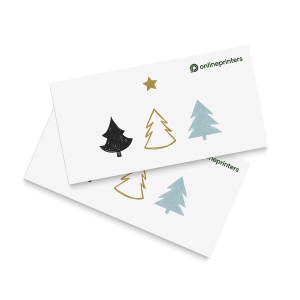 La tarjeta plegable en DIN A6 es EL formato entre las tarjetas navideñas y tiene un aspecto de gran calidad cuando la calidad del papel tiene gramajes de 250 a 400 g/m2. Las superficies brillantes y un poco de purpurina combinan especialmente bien con la Navidad. Pero una versión mate también queda muy elegante. En nuestra tienda en línea también hay tarjetas plegables de Navidad y tarjetas plegables de Navidad con colores de efecto.