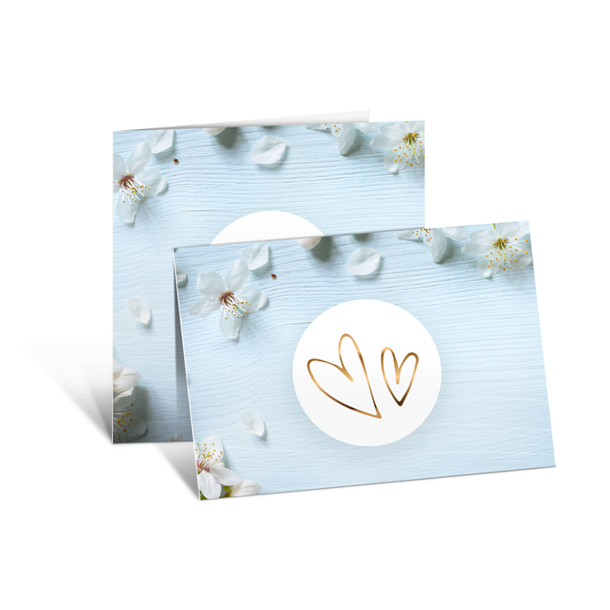 Amables tarjetas para el día más hermoso de la vida; disponibles como tarjetas plegables o postales