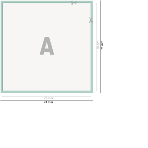 - Formato de datos (incl. 2 mm sangrado): 7,4 x 7,4 cm