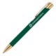 - bolígrafo en aluminio con aplicaciones doradas, acabado símil caucho y tinta azul de gran carga