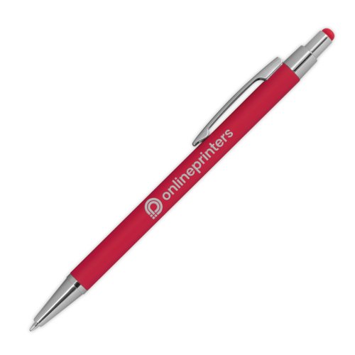 - Boligrafo metálico delgado con recubrimiento de goma, recambio de escritura azul y función táctil
