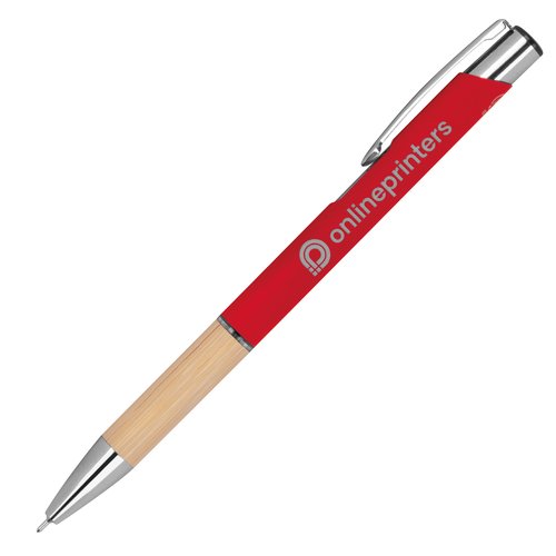 Bolígrafo de gel rojo reciclado con clip y botón pulsador.