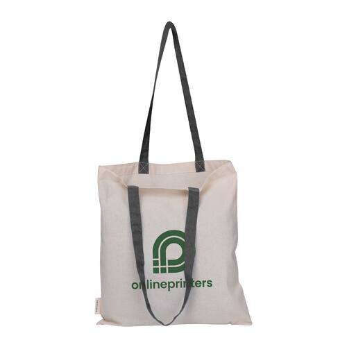 • Bolsa de algodón con dos asas largas, hecha de un 75 % de algodón reciclado y un 25 % de PET reciclado