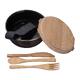 - Fiambrera (capacidad de 700 ml) de metal con tapa de bambú, junto con una cuchara, un tenedor y un cuchillo también de bambú