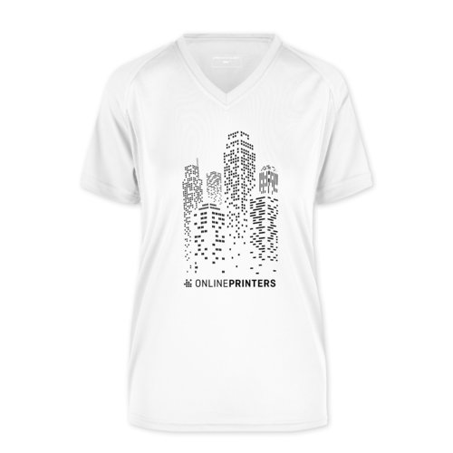 Camiseta funcional blanca de poliéster para mujer con cuello en V.