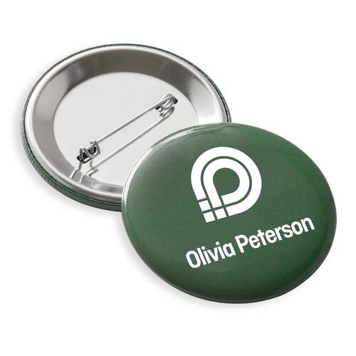 • Distintivos en chapa con prendedor de aguja en el reverso para fijación