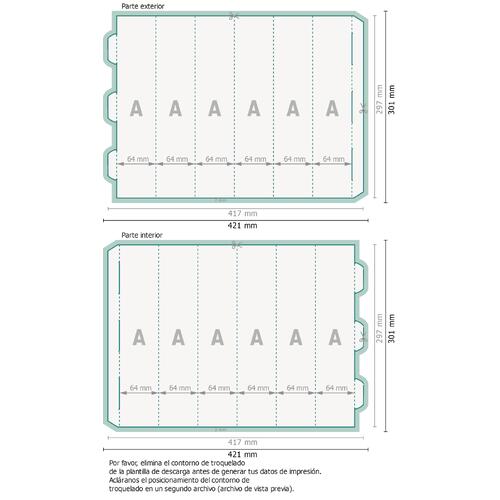 - Formato de datos (incl. 2 mm sangrado): 42,1 x 30,1 cm