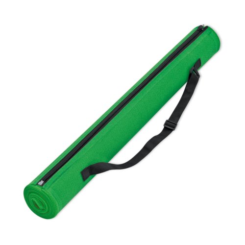 Estera de playa verde con asa de transporte y bolsillo con cremallera.