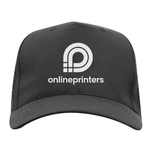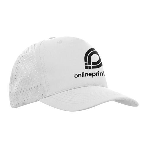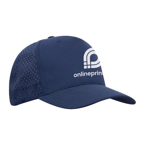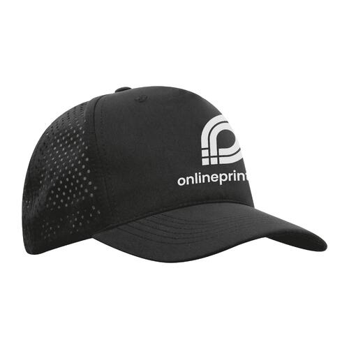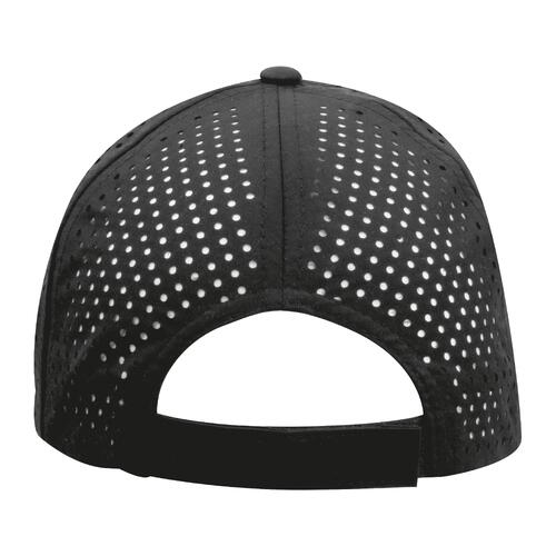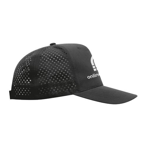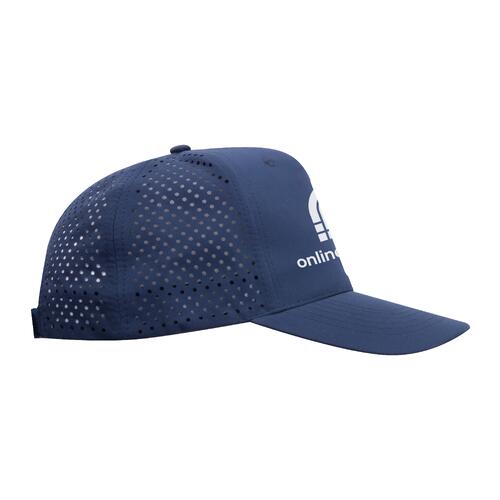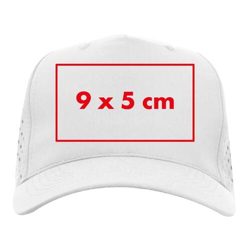 • Gorra de béisbol de 5 paneles hecha de poliéster, con cierre de velcro en la parte posterior y banda absorbente en el interior