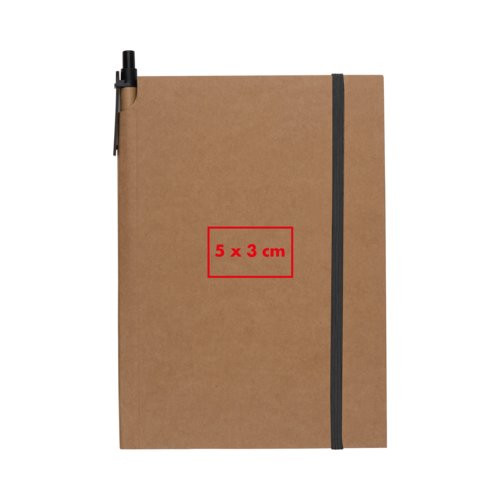 - Libreta grande con cubierta ecológica, 160 paginas en cuadrícula, cierre de goma elástica y soporte para bolígrafo