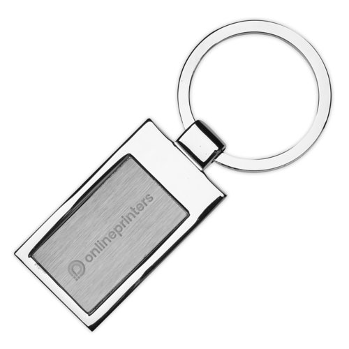 - Llavero rectangular, cromado y mate presentado en estuche de cartón