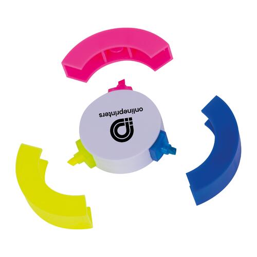 - El subrayador 3 en 1 cuenta con un marcador rosa, uno amarillo y uno azul