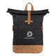 - Mochila de RPET fabricada en poliéster bicolor 300D y RPET 210D con un compartimento principal con cierre y dos compartimentos laterales con cierre. Asas acolchadas y fondo de corcho.