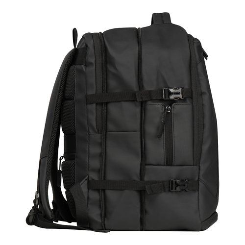• La mochila impermeable dispone de muchos compartimentos: compartimento para portátil con cierre y bolsillo adicional, compartimento de seguridad en la espalda, compartimento lateral con red y cremallera para ampliación, compartimento para ropa sucia en la parte inferior, compartimento acolchado bajo la parte delantera, compartimento lateral con cremallera delante y varios compartimentos interiores