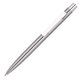 Bolígrafo de acero inoxidable gris plateado con mecanismo de pulsación.