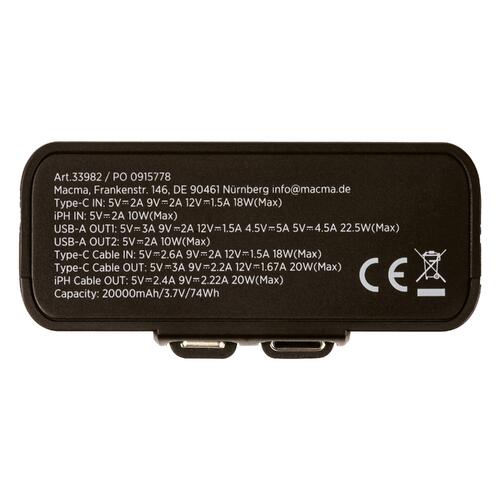 - Impresionante capacidad de 20.000 mAh para una amplia alimentación móvil
