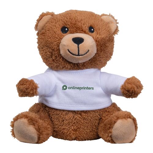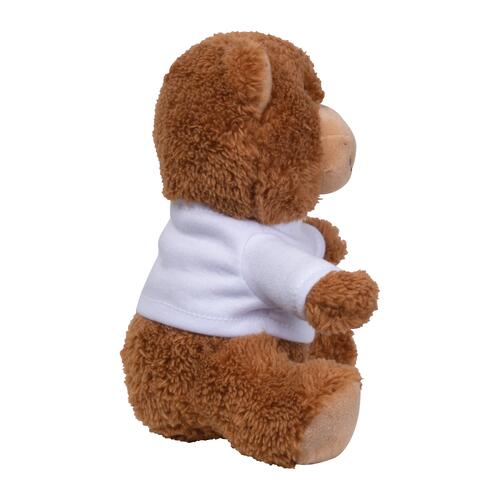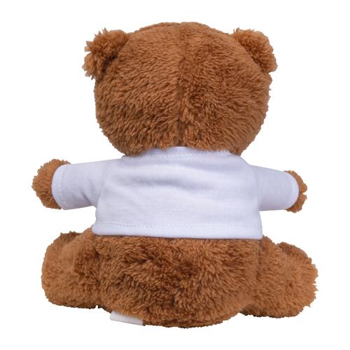 - Pequeño oso de peluche de poliéster con camiseta blanca hecha de poliéster reciclado