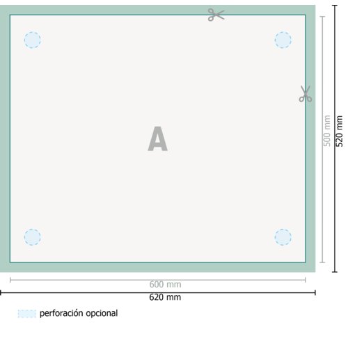 - Formato de datos (incl. 10 mm sangrado): 62 x 52 cm