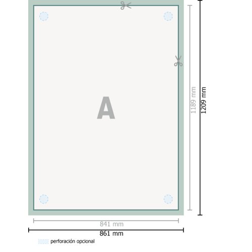 - Formato de datos (incl. 10 mm sangrado): 86,1 x 120,9 cm