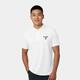 Polo blanco de algodón orgánico para hombre con tapeta de botones corta.
