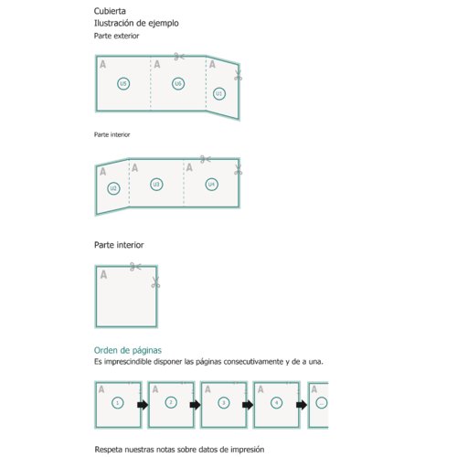 - Nota: en la cubierta de 6 páginas se deben crear más cortas las páginas exteriores. Encontrarás los detalles correspondientes en Particularidades.