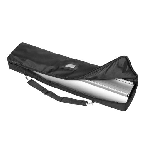 - Sistema roll up estándar de aluminio, con banner impreso, «mástil» de 3 piezas y una cómoda bolsa de transporte.
