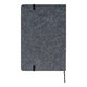 - El cuaderno tiene una tapa de fieltro con incrustaciones de bambú, 160 páginas de papel rayado reciclado, un marcapáginas y una banda elástica de cierre