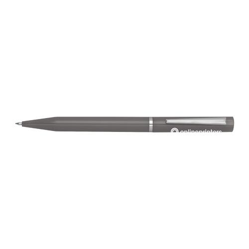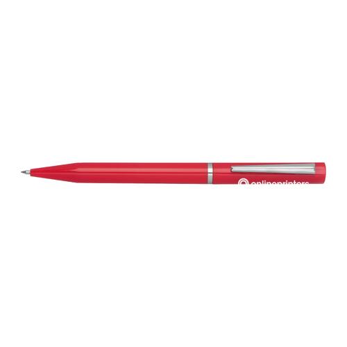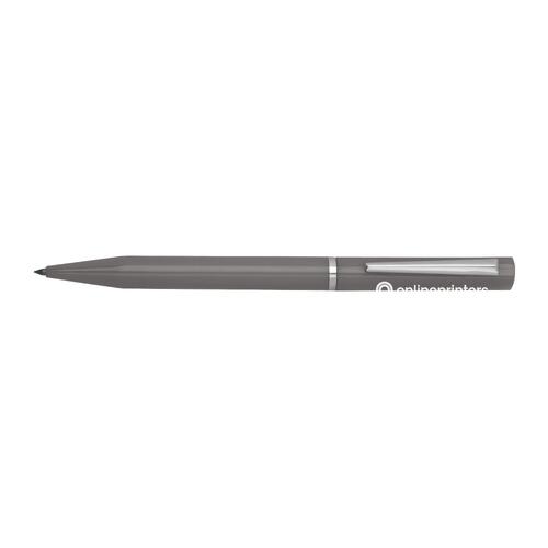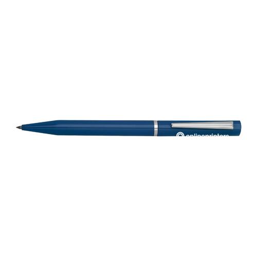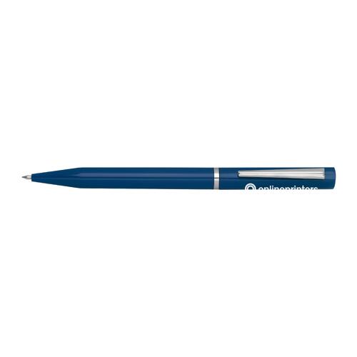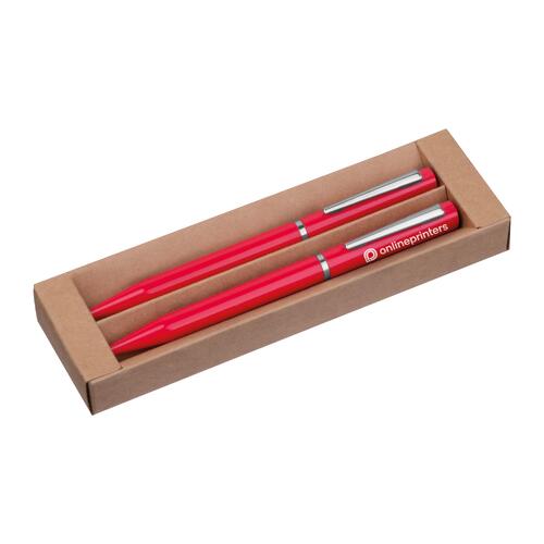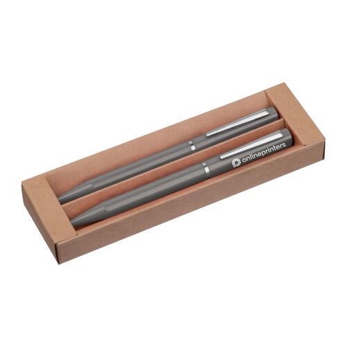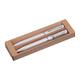 - Set de escritura compuesto por un bolígrafo giratorio de tinta azul, un lápiz giratorio sin tinta y una caja de cartón