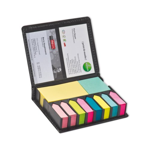- sets de marcadores con 200 hojillas adhesivas amarillas y azules, y también 200 marcadores adhesivos en 6 colores diferentes