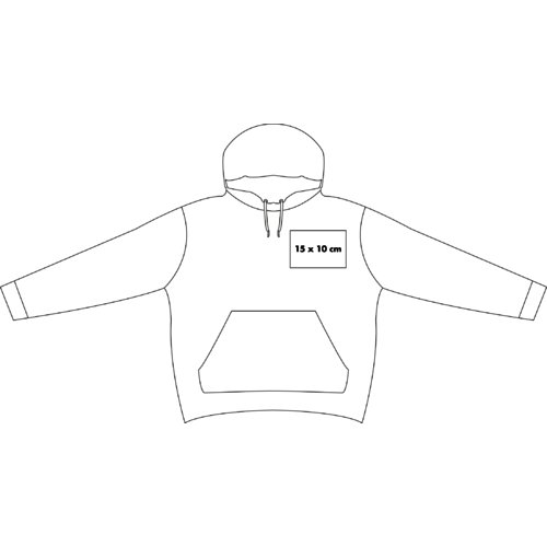 Sudadera unisex de tela con capucha y bolsillo tipo canguro.