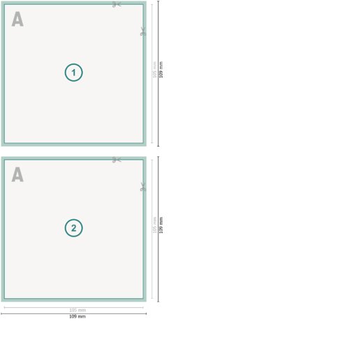 - Formato de datos (incl. 2 mm sangrado): 10,9 x 10,9 cm