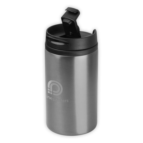 - Taza hecha de metal con tapa deslizante para beber en un tapón de rosca y capacidad de 250 ml