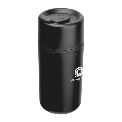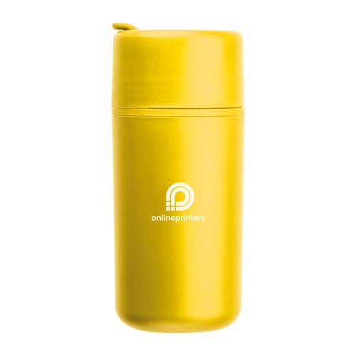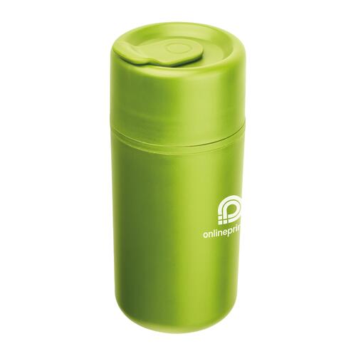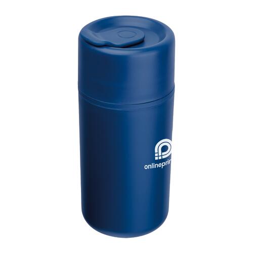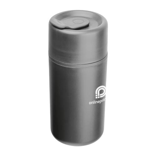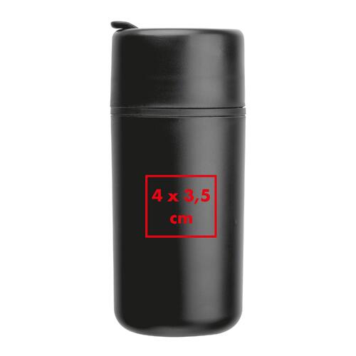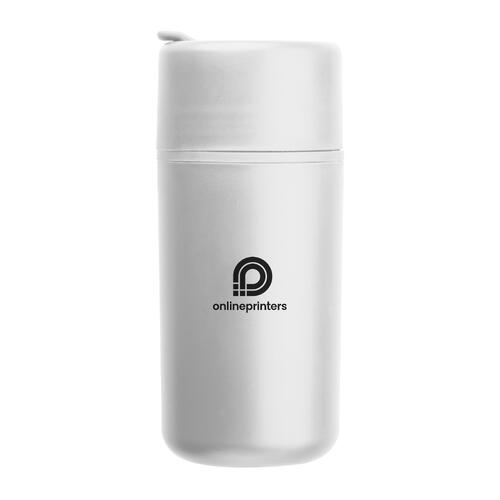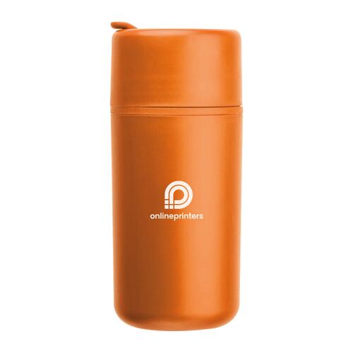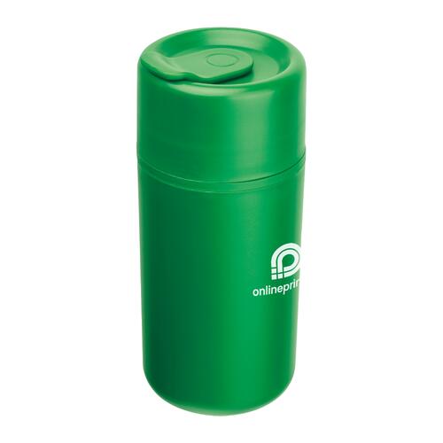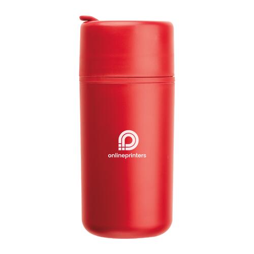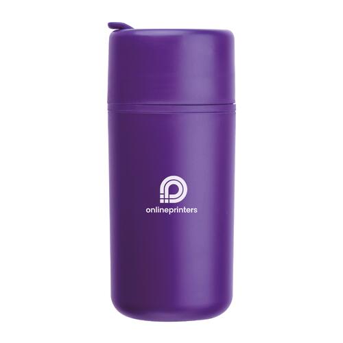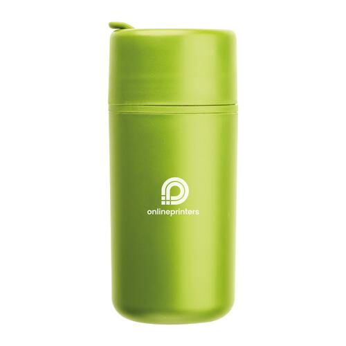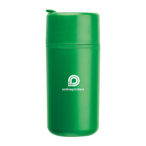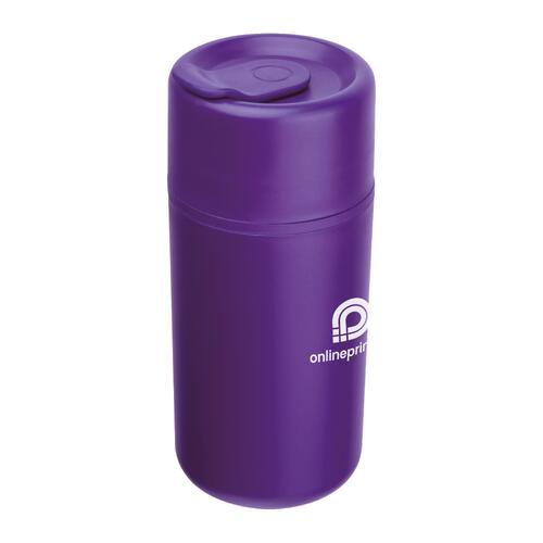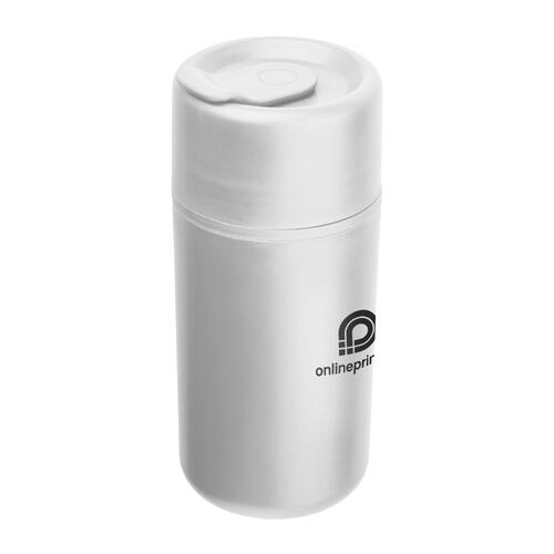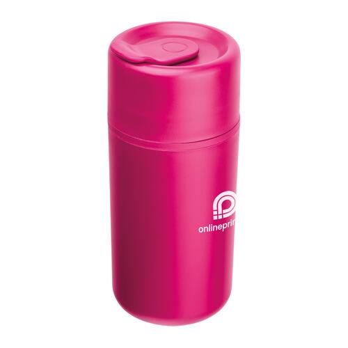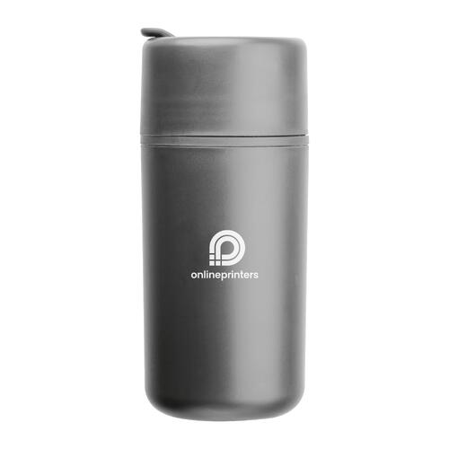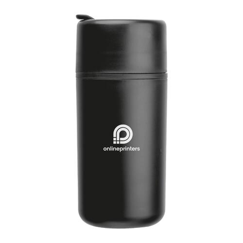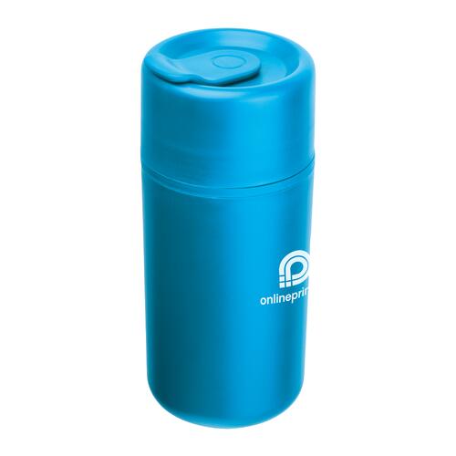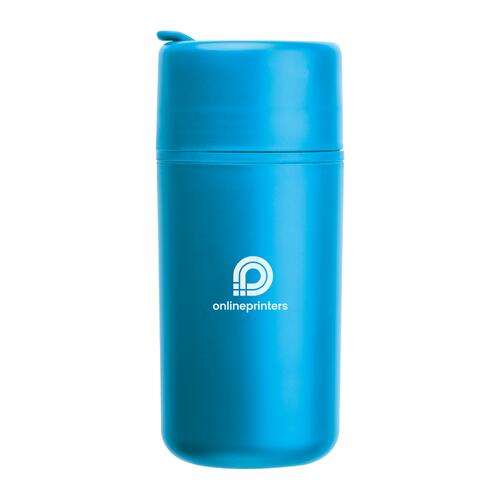 - Vaso de doble pared de plástico (polipropileno) con una capacidad de 500 ml y una abertura deslizante para beber