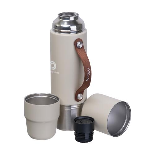 - Diseño inteligente con dos vasos integrados – uno en la tapa, otro en la base